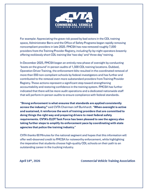 *Webinar* CVTA's 2026 Advocacy Day: Truck Driver Training Priorities in the 119th CongressMar 13, 2026, 2:00 p.m. – 3:00 p.m.Given upon RSVP